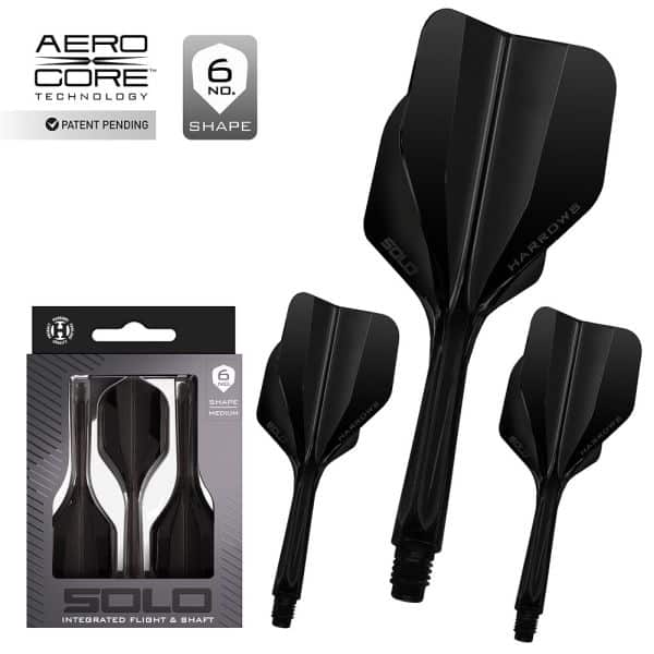 De Harrows Solo Black NO6 is een innovatief integrated dart flights system dat zorgt voor maximale stabiliteit en controle tijdens het darten. Dankzij het geïntegreerde ontwerp blijven de flights altijd perfect in vorm en positie, zonder verschuiven of vervangen. Ideaal voor spelers die focussen op precisie, duurzaamheid en een strakke vlucht.