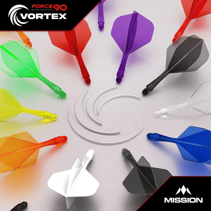 De Mission Force 90 Vortex is een innovatieve moulded flight & shaft combinatie in één geheel. Dit geïntegreerde systeem zorgt voor maximale stabiliteit, minder trillingen en een consistente vlucht van je dartpijl.