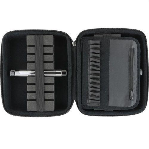 De Jack Daniels Luxor Large Wallet is een grote dart case waar 4 sets dartpijlen in zijn geheel inpassen. Je hoeft dus niet eerst je flights eraf te halen voordat ze in de dart wallet passen. Daarnaast biedt deze dart wallet ruimte voor extra accessoires die je, achter een afgesloten vakjes kunt opbergen.